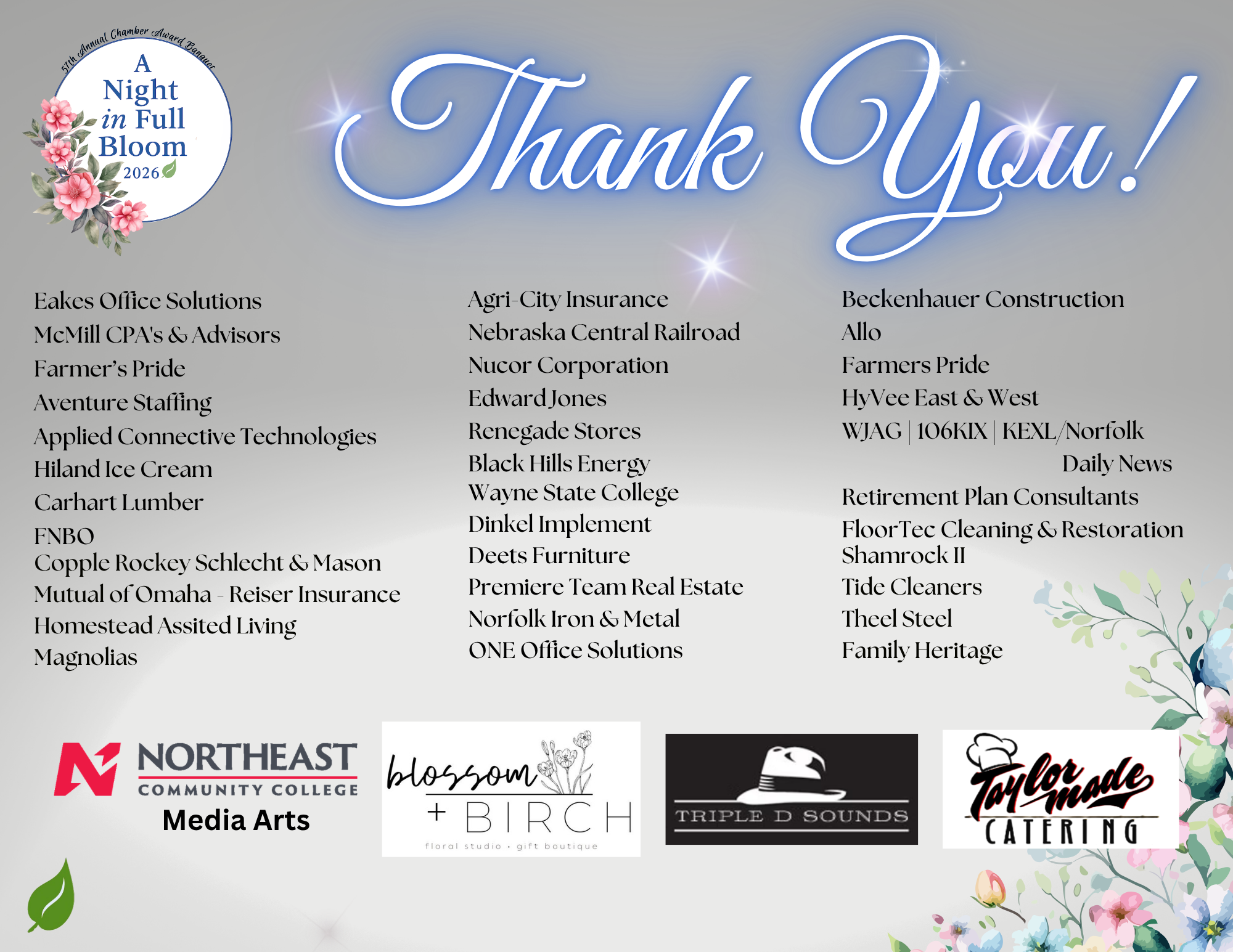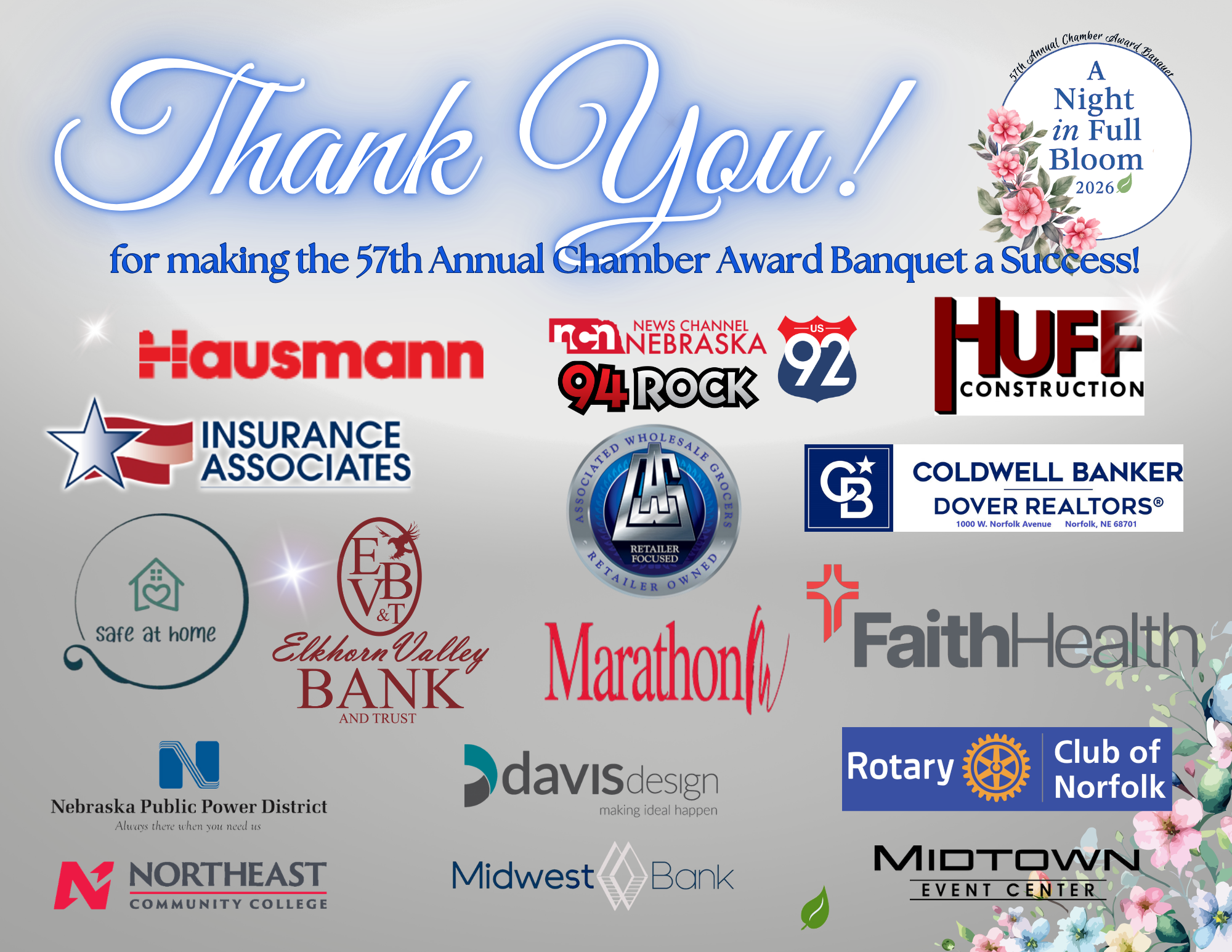 The Norfolk Area Chamber of Commerce 57th Annual Award Banquet will be held on April 9, 2026.