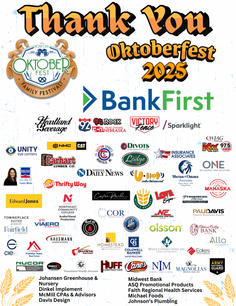 The Norfolk Area Chamber of Commerce invites you to join us late September for the Annual Oktoberfest Family Festival—a celebration blending the warmth of German heritage with the heart of Nebraska traditions.